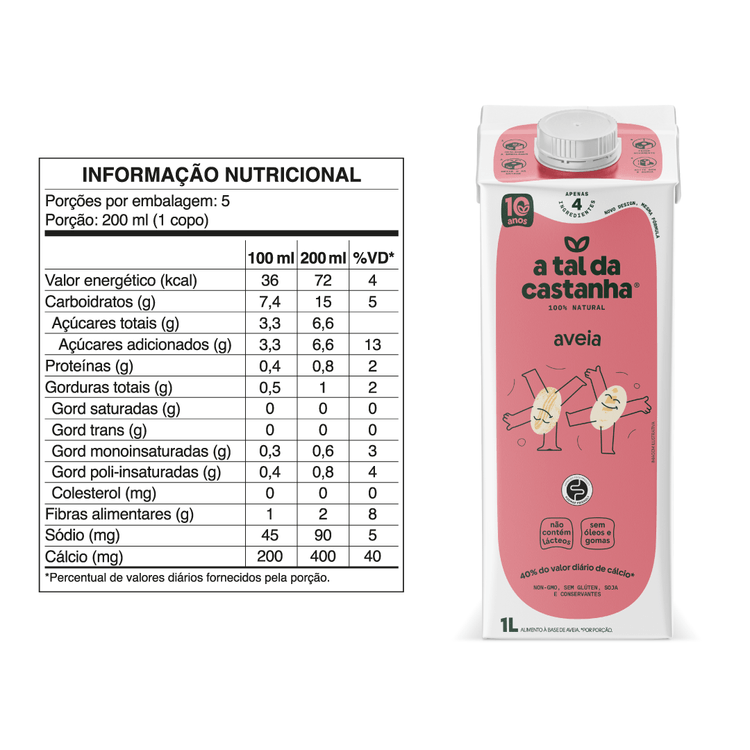 O Aveia Sem Glúten é o leite vegetal perfeito para quem busca sabor, qualidade e versatilidade. Feito apenas com aveia brasileira, ele é ideal para cafés, vitaminas, receitas ou até mesmo para beber puro. 100% vegano e plant-based, é livre de lácteos, conservantes, açúcar e aditivos artificiais. Com mais cálcio e proteínas em sua nova fórmula, é uma escolha saudável e sustentável, respeitando o meio ambiente.