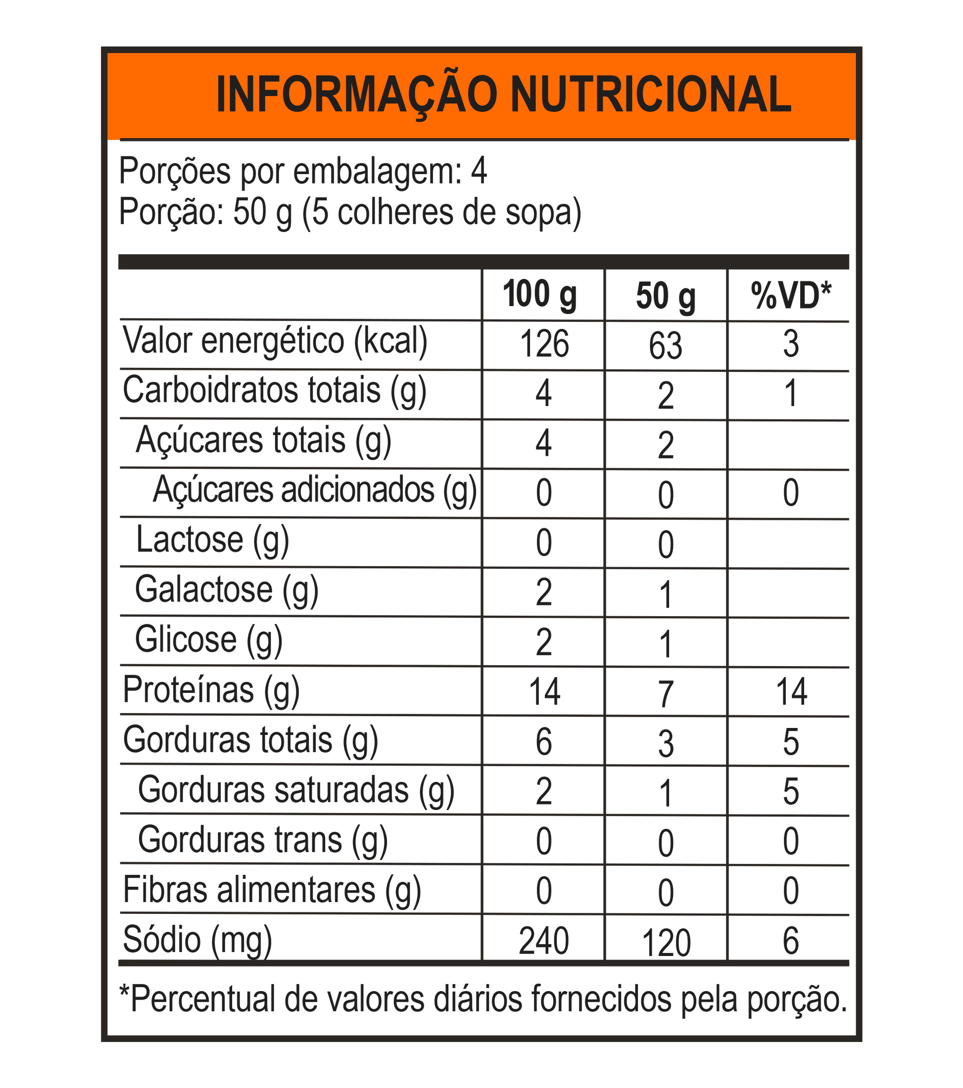 Ingredientes: Leite desnatado pasteurizado, creme de leite, sal, fermento lácteo e enzima lactase.